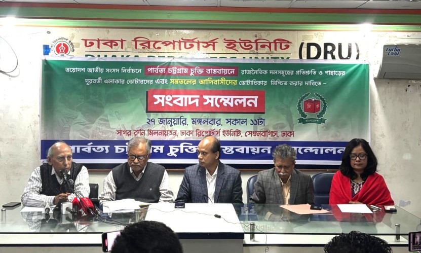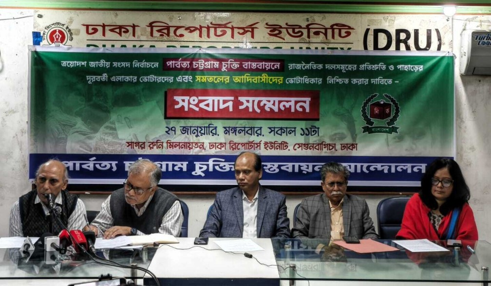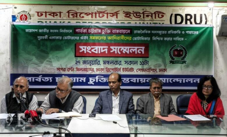 ত্রয়োদশ সংসদ নির্বাচন নিয়ে পার্বত্য চট্টগ্রাম চুক্তি বাস্তবায়ন আন্দোলনের সংবাদ সম্মেলন