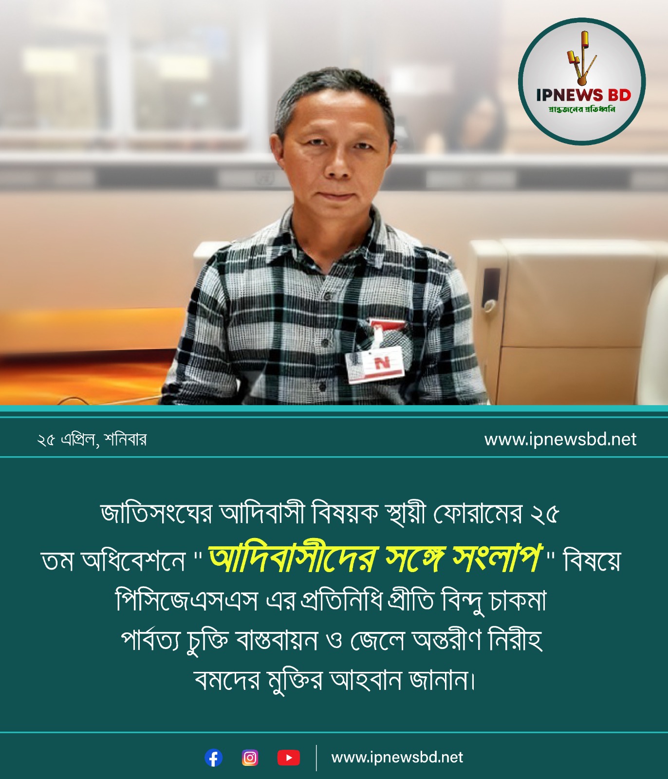 আইপিনিউজ বিডি: গত ২০ এপ্রিল ২০২৬ নিউইয়র্কের স্থানীয় সময় বিকাল ৫টায় জাতিসংঘের আদিবাসী বিষয়ক স্থায়ী…