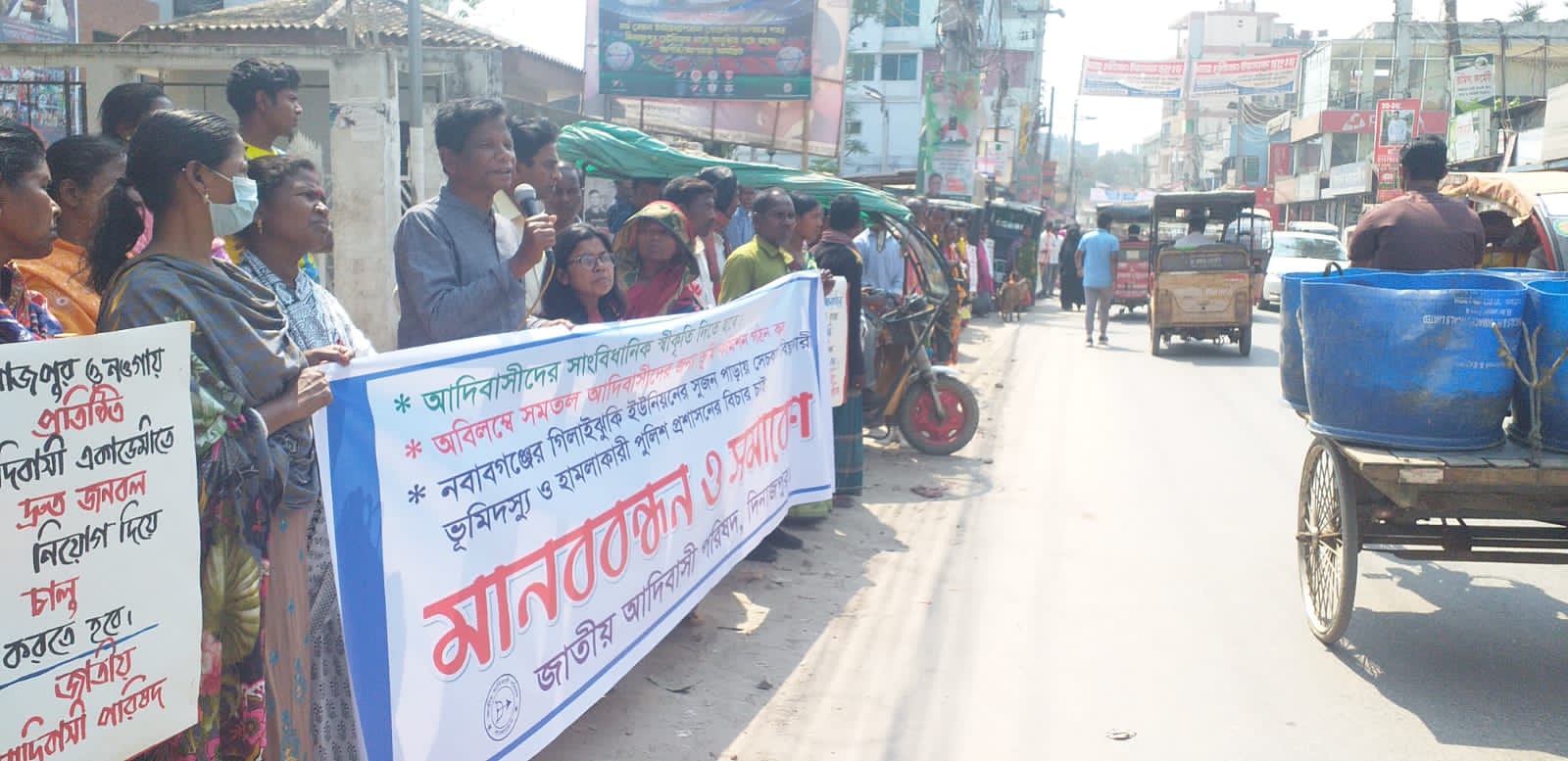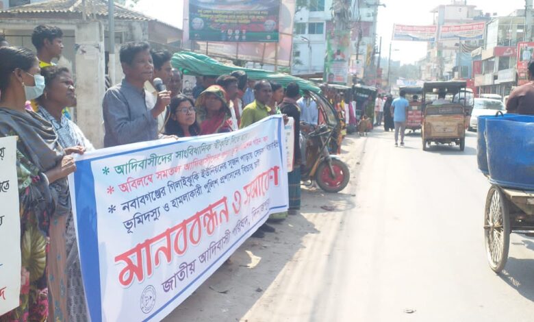 আদিবাসীদের সাংবিধানিক স্বীকৃতি নিশ্চিতের দাবিতে দিনাজপুরে মানববন্ধন