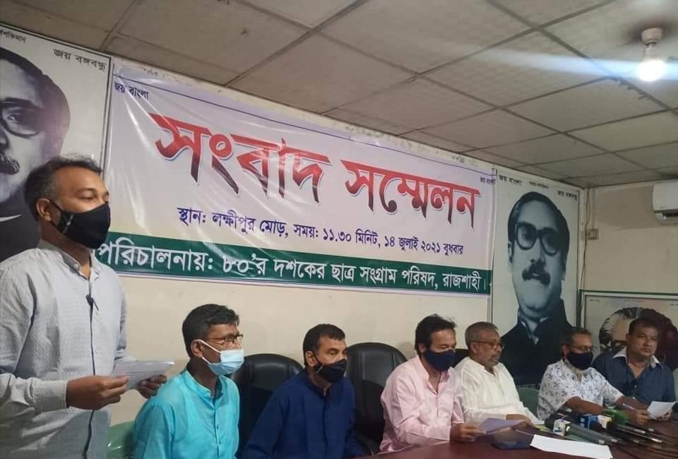 ৮০ দশকের ছাত্র সংগ্রাম পরিষদ, রাজশাহী আয়োজনে আজ ১৪ ই জুলাই ২০২১ রোজ বুধবার লক্ষিপুরে অবস্থিত অস্থায়ী কার্যলয়ে এক সংবাদ সম্মেলনে ৮০ দশকের ছাত্র সংগ্রাম পরিষদ, রাজশাহীর নেতৃবৃন্দ এক সংবাদ সম্মেলনে দৃঢ় প্রত্যয় নিয়ে বলেন, “আমরা লড়ছি সকল সিন্ডিকেটের বিরুদ্ধে”। করোনা কালীন সময়ে সুচিকিৎসা, জনগণকে সচেতন, চিকিৎসার সাথে সম্পৃক্ত বিভিন্ন বিষয় এর সিন্ডিকেটের কঠিন জবাব দিতে প্রস্তুত নেতৃবৃন্দ।