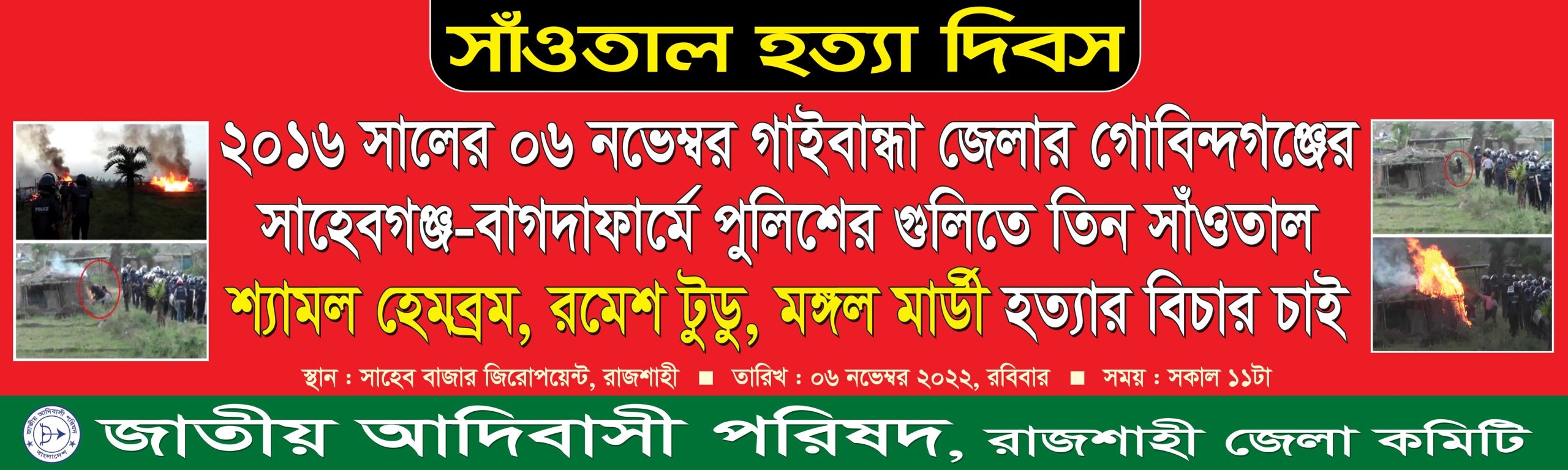 তিন সাঁওতাল হত্যাকান্ডের বিচারের দাবিতে জাতীয় আদিবাসী পরিষদের মানববন্ধন আগামীকাল
