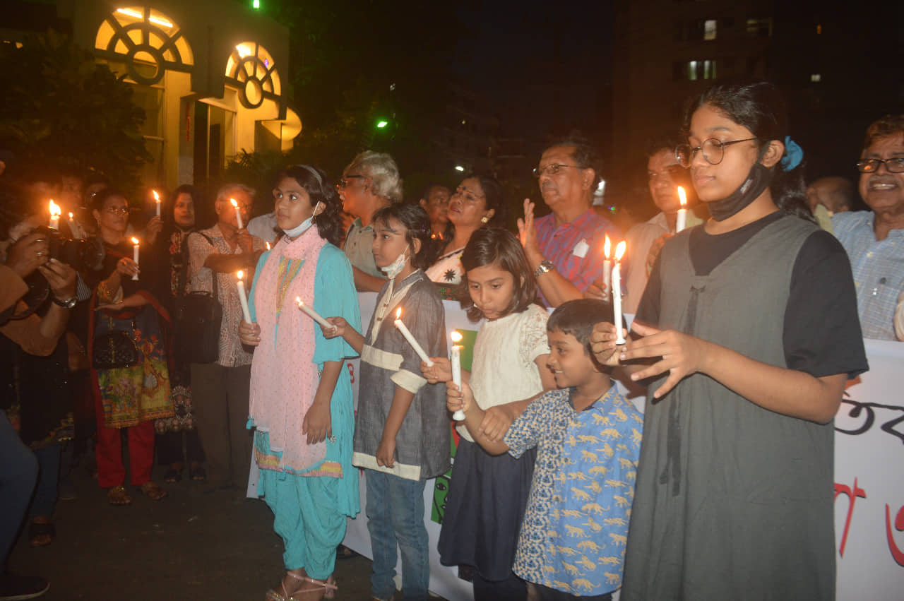 শনিবার সন্ধ্যায় চট্টগ্রামের চেরাগী পাহাড় মোড়ে শিক্ষক হত্যা ও নির্যাতনকারীদের দৃষ্টান্তমূলক শাস্তি এবং সমাজ ও শিক্ষায় সাম্প্রদায়িক সহিংসতা রুখে দাঁড়ানোর দাবিতে পরিবেশবাদী সংগঠন ‘পিপলস ভয়েস’ আয়োজিত প্রতিবাদ সমাবেশ ও আলোক প্রজ্জ্বলন কর্মসূচিতে বক্তারা উপরোক্ত কথা বলেন।