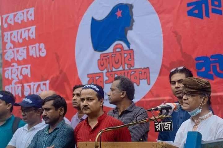 সমাবেশে যুব নেতৃবৃন্দ বলেন, বাংলাদেশের মহান স্বাধীনতার ৫১ বছর উদযাপিত হচ্ছে। আজও দেশের ১ কোটি ১০ লক্ষ প্রাতিষ্ঠানিক শ্রমিক, ২ কোটি ৩০ লক্ষ কৃষি শ্রমিক এবং আরও প্রায় ৩ কোটি ২০ লাখ অন্যান্য পেশার শ্রমজীবি মানুষের কারো জন্যই, রাষ্ট্রীয়ভাবে আর্থিক, সামাজিক বা স্বাস্থ্যগত সুরক্ষা নিশ্চিত হয়নি। সাধারণ মানুষ ক্রমে আরো নিঃস্ব হচ্ছে। দেশের ৩% লুটেরা ধনীর বিপরীতে ৯৭% সাধারণ মানুষ। দেশের এক চতুর্থাংশ কর্মক্ষম মানুষের পূর্ণকালীন কাজের ব্যবস্থা নেই। সরকারি চাকরিতে ৩ লক্ষ ৬৯ হাজার ৪৫১টি শূন্যপদ রয়েছে। দেশের উচ্চ শিক্ষিত যুবদের ৪৭ শতাংশের কাজ নেই। দেশের বিপুল এই কর্মহীন যুবদের সাথে করোনাকালীন পরিস্থিতিতে যোগ হয়েছে আরও কোটি বেকার। বাংলাদেশ অর্থনীতি সমিতি বলছে, করোনাকালে প্রায় ৩ কোটি মানুষ কাজ হারিয়েছে। কমপক্ষে ১৪ লক্ষ প্রবাসী শ্রমিক বেকার হয়েছে। ফরমাল সেক্টরে ১৩ ভাগ মানুষ চাকরিচ্যুত হয়েছেন। বাংলাদেশ ব্যাংক বলছে দেশের ৭২% মানুষের আয় কমেছে। দ্রব্যমূল্যের লাগামহীন বৃদ্ধিতে জনজীবনের সংকট আরো তীব্রতর হচ্ছে। এ অবস্থায় দেশের বিপুল কর্মহীন যুবকদের ঐক্যবদ্ধ হয়ে কর্মসংস্থানের দাবিতে আন্দোলন গড়ে তোলা ছাড়া বিকল্প নেই।