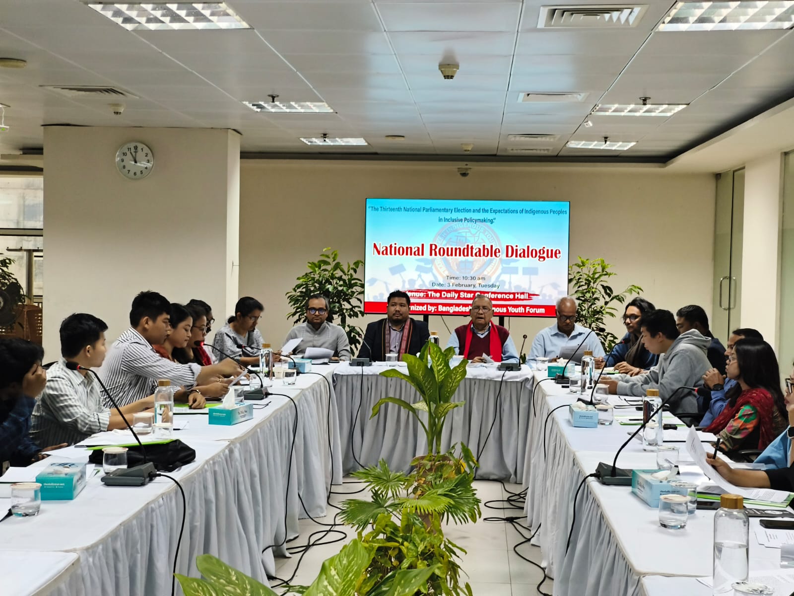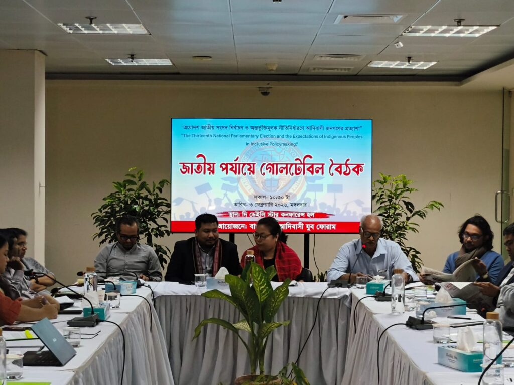 আইপিনিউজ বিডি: বাংলাদেশ আদিবাসী যুব ফোরাম কর্তৃক আয়োজিত “ত্রয়োদশ জাতীয় সংসদ নির্বাচন ও অন্তর্ভুক্তিমূলক নীতিনির্ধারণে আদিবাসী জনগণের প্রত্যাশা” শীর্ষক এক জাতীয় গোলটেবিল বৈঠক ঢাকার দি ডেইলি স্টার কনফারেন্স হল রুমে আজ ৩ ফেব্রুয়ারি সকাল ১০:৩০ টায় অনুষ্ঠিত হয়। বাংলাদেশ আদিবাসী যুব ফোরামের সাধারণ সম্পাদক মনিরা ত্রিপুরায় সঞ্চালনায় সভার শুরুতে শুভেচ্ছা বক্তব্য প্রদান করেন সংগঠনের সহ সভাপতি অমর শান্তি চাকমা এবং মূল প্রবন্ধ উপস্থাপন করেন আন্তর্জাতিক বিষয়ক সম্পাদক সতেজ চাকমা।