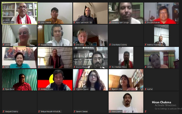 সতেজ চাকমা: আন্তর্জাতিক আদিবাসী দিবস ২০২০ উপলক্ষ্যে বাংলাদেশ আদিবাসী ফোরাম গতকাল ১১ আগষ্ট একটি অনলাইন ওয়েবিনারের আয়োজন করে। সন্ধ্যা ৭ টাই অনুষ্ঠিত উক্ত ওয়েবিনার আলোচনায় বিভিন্ন দেশের কূটনৈতিক ও প্রতিনিধিবৃন্দ ছাড়াও আঞ্চলিক ও আন্তর্জাতিক পর্যায়ের আদিবাসী নেতৃবৃন্দ উপস্থিত ছিলেন। বাংলাদেশ আদিবাসী ফোরামের সাধারন সম্পাদক সঞ্জীব দ্রং এর পরিচালনা ও সভাপতিত্বে উক্ত আলোচনায় অন্যান্যোর মধ্যে উপস্থিত ছিলেন ঢাকায় নিযুক্ত নরওয়ে অ্যাম্বেসির প্রতিনিধি খ্রিষ্টিন টি ওয়ারিংসা, বাংলাদেশে কর্মরত ইউরোপীয় ইউনিয়নের প্রতিনিধি ড. হান্স লামব্রেসড, বাংলাদেশে নিযুক্ত জাতিসংঘের মানবাধিকার বিষয়ক সিনিয়র উপদেষ্টা মিস.হেইক আলেফসেন, জাতীয় মানবাধিকার কমিশনের সাবেক চেয়ারম্যান অধ্যাপক ড. মিজানুর রহমান, চাকমা সার্কেল চীফ ব্যারিষ্টার দেবাশীষ রায়, নরওয়ের ট্রামসো বিশ্ববিদ্যালয়ের অধ্যাপক ড. টনি ব্লেই, এশিয়া ইন্ডিজিনাস পিপসলস্ প্যাক্ট (এআইপিপি) এর সাধারন সম্পাদক গাম এ শিমরে।এছাড়া উক্ত আলোচনায় উপস্থিত ছিলেন সুইজারল্যান্ড অ্যাম্বাসি বাংলাদেশ এর রাজনৈতিক, অর্থনৈতিক ও সাংস্কৃতিক বিষয়ক প্রধান কর্মকর্তা টমাস বাউমগার্টনার, ন্যাদারল্যান্ড অ্যাম্বাসি বাংলাদেশ এর সিনিয়র পলিসি এডভাইসর রুজান সারওয়ার, আন্তর্জাতিক শ্রম সংস্থার প্রতিনিধি টউমো পটিয়েনেন, ডেনিস অ্যাম্বাসি বাংলাদেশ এর রাষ্ট্রদূত উইনি এসট্রুপ পিটারসেন, ফিলিপিনের আদিবাসী নেত্রী জোয়ান কার্লিং, জাতিসংঘের আদিবাসী বিষয়ক এ´পার্ট ম্যাকানিজম কাউন্সিলের সদস্য ও বাংদেশ আদিবাসী ফোরামের আন্তর্জাতিক বিষয়ক সম্পাদক বিনোতাময় ধামাই, আদিবাসী নারী নেত্রী চঞ্চনা চাকমা, আদিবাসী অধিকার কর্মী চন্দ্রা ত্রিপুরা সহ বিভিন্ন মিডিয়ার সাংবাদিক ও অন্যান্য আদিবাসী নেত্রীবৃন্দ।