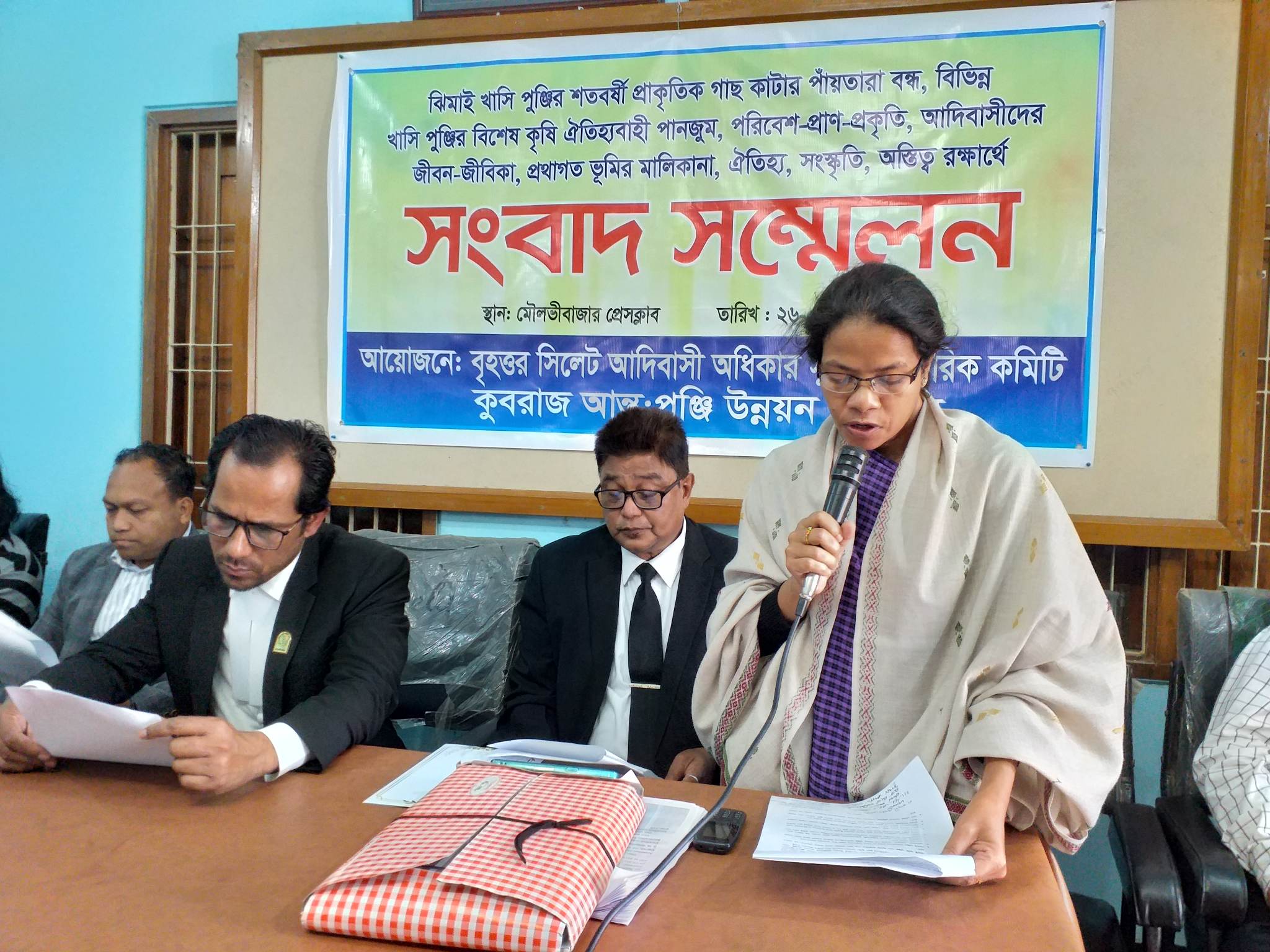 উক্ত সংবাদ সম্মেলনে সভাপতিত্ব করেন বৃহত্তর সিলেট আদিবাসী অধিকার সুরক্ষা নাগরিক কমিটি’র সভাপতি অ্যাডভোকেট ডাডলি ডেরিক প্রেন্টিস। সংগঠনটির সাধারণ সম্পাদক অ্যাভোকেট আবুল হাসান সঞ্চালনায় উক্ত সংবাদ সম্মেলনে লিখিত বিবৃতি পাঠ করেন কুবরাজ আন্তঃ পুঞ্জি উন্নয়ন সংগঠন এর সাধারণ সম্পাদক ফ্লোরা বাবলি তালাং। এছাড়াও উপস্থিত ছিলেন বাংলাদেশের কমিউনিস্ট পার্টি’র মৌলভীবাজার জেলা শাখার সাধারণ সম্পাদক অ্যাডভোকেট নিলিমেষ ঘোষ বলু, বাংলাদেশ পরিবেশ আন্দোলন, মৌলভীবাজার জেলা’র আসম সালেহ সোহেল, বৃহত্তর সিলেট ত্রিপুরা উন্নয়ন পরিষদের সভাপতি জনক দেববর্মা, ঝিমাই পুঞ্জির মন্ত্রী রানা সুরং, নাগরিক কমিটির সদস্য এলিসন সুঙ প্রমুখ।