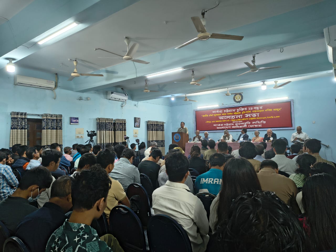 মানবাধিকার কর্মী খুশি কবির বলেন, ১৯৪৭ সালে পার্বত্য চট্টগ্রামের ৯০ শতাংশের বেশি মানুষই আদিবাসী ছিলেন। কিন্তু দমন-পীড়ন, বৈষম্য ও ভূমি হারানোর চাপে তাদের সশস্ত্র আন্দোলনে যেতে বাধ্য করা হয়। আন্দোলনের ফলে একটি চুক্তি হলেও সেটির মূল ধারা আজও বাস্তবায়িত হয়নি। তিনি উল্লেখ করেন, চুক্তি বাস্তবায়ন কেন হচ্ছে না—তা খতিয়ে দেখতে একটি আন্তর্জাতিক কমিশন গঠন করা হলেও তাদের কাজে বাধা দেওয়া হয়। পার্বত্য চট্টগ্রামে মানবাধিকার লঙ্ঘনের ঘটনা অনুসন্ধানে গেলে সেটেলার বাঙালিদের হামলার মুখেও পড়তে হয়েছে। তিনি আরও বলেন, ব্রিটিশ আমল থেকে শুরু করে বর্তমান বাংলাদেশ পর্যন্ত শাসকগোষ্ঠী ইচ্ছাকৃতভাবে সেখানে জনসংখ্যার ভারসাম্য পরিবর্তন করেছে। তাই আদিবাসী জনগণের ভূমি, সংস্কৃতি ও অস্তিত্ব রক্ষায় চুক্তি বাস্তবায়নই একমাত্র পথ, এবং সেজন্য সকল পক্ষকে ঐক্যবদ্ধভাবে কাজ করার আহ্বান জানান।