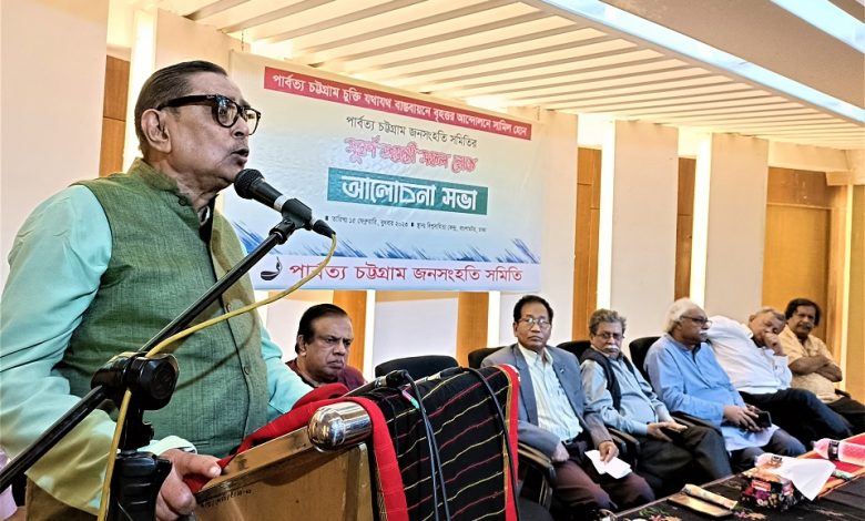রাশেদ খান মেনন বলেন, যারা এই দলটি গঠন করেছিল তারা আজ বয়সের ভারে নুহ্য। রাজনৈতিক সমাধানের লক্ষেই পার্বত্য চট্টগ্রাম জনসংহতি সমিতির সৃষ্টি। কাপ্তাই বাঁধের বিরুদ্ধে দাঁড়িয়েই পাহাড়ের তৎকালীন তরুণরা সংগঠিত হয়েছিল। তারই ধারাবাহিকতায় পার্বত্য চট্টগ্রাম জনসংহতি সমিতি গঠন করে তারা। এই দলটি স্পষ্টভাবে ইঙ্গিত করেছে যে, বাংলাদেশে বাঙালি ভিন্ন আপরাপর আদিবাসীদেও স্বীকৃতি চেয়েছেন। এবং সেটা অনিয়মতান্ত্রিক ভাবে নয়। তারা সংবিধানের আওতার মধ্য দিয়েই এই স্কীকৃতি চেয়েছেন।