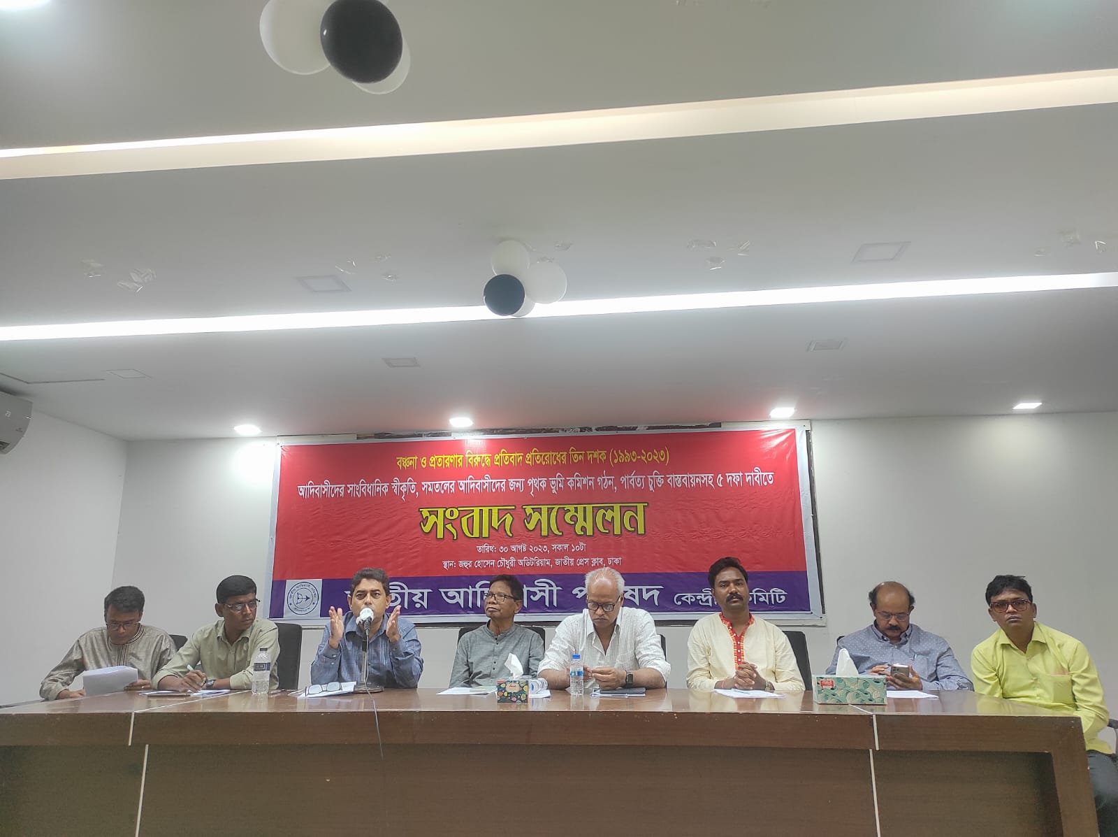 তিন দশক পূর্তিতে আদিবাসীদের আদিবাসী হিসেবে সাংবিধানিক স্বীকৃতি প্রদান, সমতলের আদিবাসীদের জন্য পৃথক মন্ত্রণালয় ও ভূমি কমিশন গঠন এবং পার্বত্য চুক্তি বাস্তবায়নের দাবিতে আজ বুধবার, সকাল ১০ টায় জাতীয় প্রেস ক্লাবের জহুর হোসেন চৌধুরী অডিটোরিয়ামে সংগঠনটি সংবাদ সম্মেলন করে।