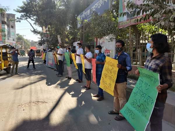 ম্রো আদিবাসীদের উচ্ছেদ প্রক্রিয়ার প্রতিবাদে মুন্সীগঞ্জে মানববন্ধন