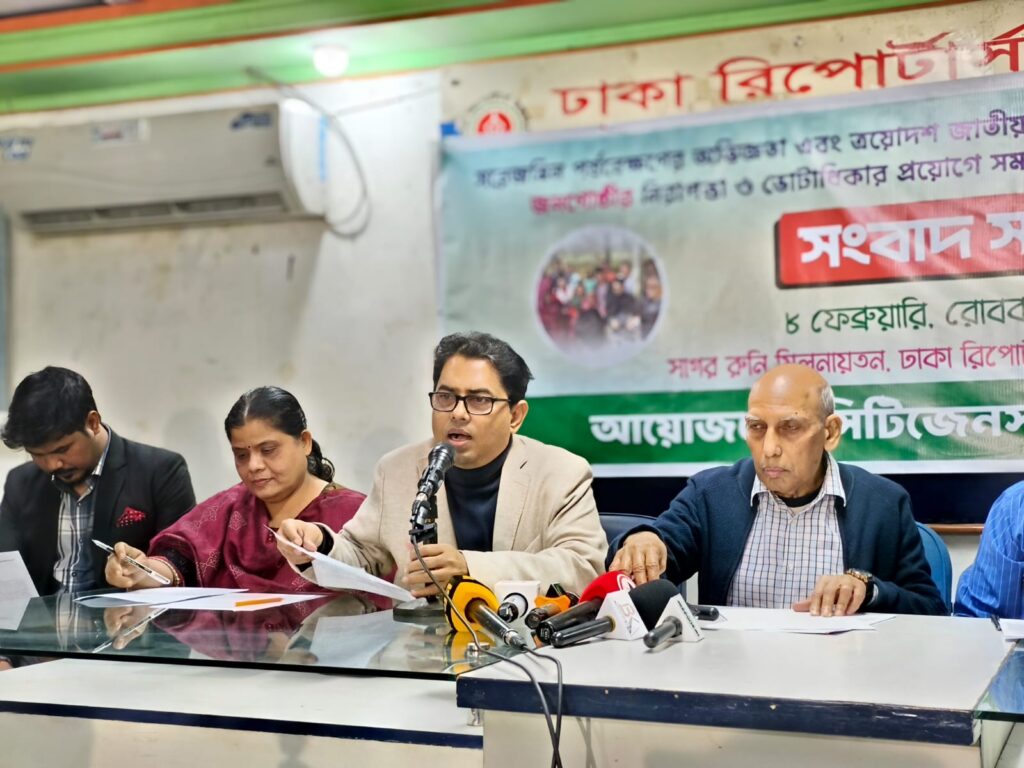 আইপিনিউজ বিডি: আজ ৮ ফেব্রুয়ারি, ২০২৬, রবিবার সকাল ১১টায় সিটিজেনস ফর হিউম্যান রাইটস- এর উদ্যোগে “সরেজমিন পর্যবেক্ষণের অভিজ্ঞতা এবং ত্রয়োদশ জাতীয় সংসদ নির্বাচনে ধর্মীয় সংখ্যালঘুসহ সকল প্রান্তিক জাতিগোষ্ঠীর নিরাপত্তা ও ভোটাধিকার প্রয়োগে সম-নির্বাচনি পরিবেশ নিশ্চিত করার দাবিতে” ঢাকা রিপোর্টাস ইউনিটির সাগর রুনি মিলনায়তনে এক সংবাদ সম্মেলন অনুষ্ঠিত হয়।