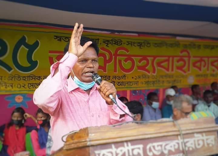 ২০০৯ সনের বর্ষণমুখর জুলাই। চাপাইনবাবগঞ্জ গোমস্তাপুরের জিনারপুর গ্রামের ধারে লালপতাকা হাতে অপেক্ষারত কিছু আদিবাসী নারী-পুরুষ। সাঁওতালি মাদল বাজিয়ে শুরু হলো ছোট্ট মিছিল। ভূমি অধিকারের দাবিতে এমনতর বহু মিছিল যুক্ত হলো ৩২ কিলোমিটারের দীর্ঘ গণপদযাত্রায়। এক বছরের ছোট্ট শিশু কোলে সেই মিছিলে বিচিত্রা তির্কীও হেঁটেছিলেন নির্ভীক। আলোচিত এই গণপদযাত্রার সমন্বয়ের দায়িত্বে ছিলেন নওগার মহাদেবপুরের সবিন চন্দ্র মুন্ডা। সবিন চন্দ্র মুন্ডাদের মতো মাঠেময়দানের এমন অদম্য নেতৃত্বই গত ২৯ বছর ধরে জাতীয় আদিবাসী পরিষদের বহু সৃজনশীল আন্দোলন কর্মসূচি সফল করে তুলেছেন। কেবল বরেন্দ্রভূমি নয়, সবিন চন্দ্র মুন্ডা প্রাণের টানে ছুটে গেছেন শ্রীমঙ্গলের নাহার খাসিপুঞ্জিতে কিংবা সুন্দরবনের মুন্ডা গ্রামে। মিছিলে মিটিংয়ে দীপ্ত করেছেন ঢাকার রাজপথ। ছুটে গেছেন পাহাড় কী সমুদ্র উপকূলের নিপীড়িত জনপদে। সংহতি জানিয়েছেন দেশের গণআন্দোলনে, হয়ে ওঠেছেন গণমানুষের এক বিশ্রামহীন নেতা। করোনা মহামারিতে গ্রামের পর গ্রাম সংকটে থাকা মানুষের পাশে দাঁড়িয়েছেন। কিন্তু নিদারুণভাবে ২০২২ সনের ৫ ফেব্রুয়ারি দুম করেই চলে গেলেন সবিন চন্দ্র মুন্ডা। এমনিতে কোনো ফুসরত ছিল না, সবেমাত্র শেষ করেছেন বাৎসরিক বিশাল আলোজনের ‘জাতীয় মুন্ডা সম্মেলন’। মৃত্যুর দিন বিকেলেও বাজার সেরে মহাদেবপুরের একটা চা দোকানে বসে শুনছিলেন গ্রামের মানুষের নানা সমস্যা সংকট। হঠাৎ মূর্চ্ছা যান, মহাদেবপুর স্বাস্থ্যকেন্দ্রে নেয়ার পর চিকিৎসক তাকে মৃত ঘোষণা করেন। জাতীয় আদিবাসী পরিষদ কেন্দ্রীয় কমিটির সাধারন সম্পাদক সবিন চন্দ্র মুন্ডা যুক্ত ছিলেন বহু সামাজিক, সাংষ্কৃতিক সংগঠন ও জনআন্দোলনের সাথে। তার কোনো তির-ধনুক ছিল না, ছিল না উচ্চশিক্ষা বা অর্থকড়ির লেবাস। ঘন্টার পর ঘন্টা পায়ে হেঁটে তিনি গ্রামের পর গ্রাম জনসংযোগ করতে পারতেন, একটা কানাকড়ি হাতে না থাকলেও সহস্র জনের আয়োজন করার সহাস করতেন, তার ডাকে মুহুর্তেই কোনো জমায়েত রূপ নিত মুগ্ধ মিছিলে। প্রান্তজনের মাঝে পরিচিত হলেও সবিন মুন্ডা ছিলেন মিডিয়াবিমুখ এক অর্ন্তমুখী মানুষ। ২০০৫ সনে রাজশাহীর ভুবনমোহন পার্কে আদিবাসী পরিষদের একটি অনুষ্ঠানে তার সাথে আমার প্রথম পরিচয়। এমন বিস্ময়কর নেতাকে জানাবোঝার জন্য সতের বছর খুব কম সময়। গ্রাম থেকে জংগল, সেমিনার থেকে মিছিল, পাহাড় থেকে রাজপথ সবিন চন্দ্র মুন্ডার সাথে থাকার বিরল অভিজ্ঞতা হয়েছে আমার। দিনে দিনে হয়ে ওঠেছিলেন আমাদের পরিবারের একজন ঘনিষ্ঠজন। সবিনদার অকালপ্রয়াণে চলতি লেখাটি এক ব্যক্তিগত স্মৃতিকথন, সবিনের চিন্তাদর্শন-রাজনীতি এবং জীবনবোধ মূল্যায়ণে এই কথন হয়তো খুব জরুরি নয়। মাঠেময়দানে জেগ