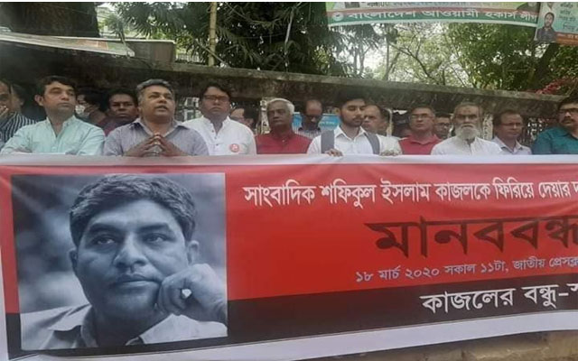 নিখোঁজ সাংবাদিক শফিকুল ইসলাম কাজলকে সুস্থ অবস্থায় ফেরত চেয়েছেন তার বন্ধু ও স্বজনরা। আজ বুধবার (১৮ মার্চ) জাতীয় প্রেস ক্লাবের সামনে সকাল ১১ টায় মানববন্ধন থেকে এ দাবি জানান তারা।