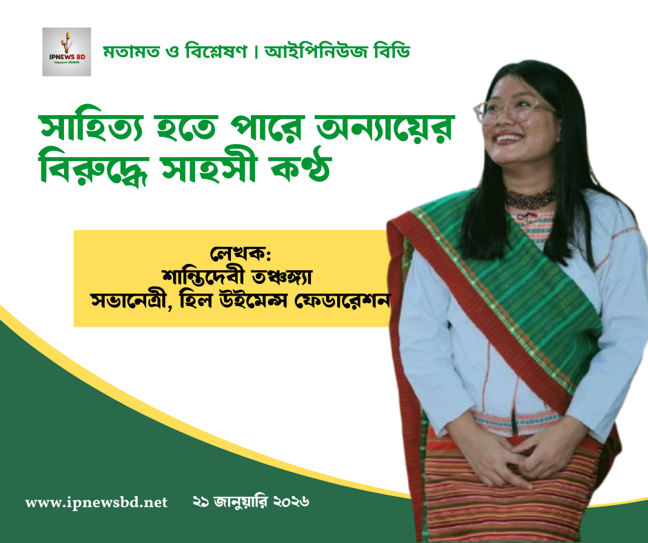 পার্বত্য চট্টগ্রামের আদিবাসী জুম্ম জনগণের নিপীড়ন ও কঠিন বাস্তবতায় এই দায়িত্ব আরও স্পষ্ট হয়ে ওঠে। জোরপূর্বক ভূমি বেদখল, সামরিকীকরণ ও সহিংসতা, নিপীড়ন, নির্যাতন এবং বহু নারী ধর্ষণের মতন ঘটনার বিরুদ্ধে আওয়াজ করা অনেক কণ্ঠ হারিয়ে গেছে। এই ক্ষেত্রে সাহিত্য শুধু শিল্প নয়; ন্যায়ের দাবিতে এক দুঃসাহসিক কন্ঠ। কবি ও লেখকদের নীরব থাকা শোভা পায় না। অন্যায়ের চিত্র তুলে ধরা, সত্য বলার সাহস দেখানো এবং সমাজকে পরিবর্তন করা কবি বা লেখকের সৌন্দর্যের প্রকৃত রূপ। গুণীজনরা আমাদের শিক্ষা দিয়েছেন যে, সাহসী লেখা কখনোই ব্যর্থ হয় না। কলমের শক্তি, শব্দের শক্তি বিস্ফোরিত হয়ে অন্যায়কে আঘাত করে। সাহসী কণ্ঠই নিপীড়িতের জন্য প্রতিরক্ষা, অন্যায়ের জন্য সতর্কবার্তা এবং ন্যায়ের জন্য শক্তি হয়ে ওঠে। কবি ও লেখকদের কলমের ভাষা হলো সমাজে আলোর রশ্মি।