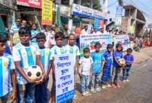 গাইবান্ধায় সাঁওতালদের স্কুল ও খেলার মাঠ দখলমুক্তের দাবিতে মানববন্ধন